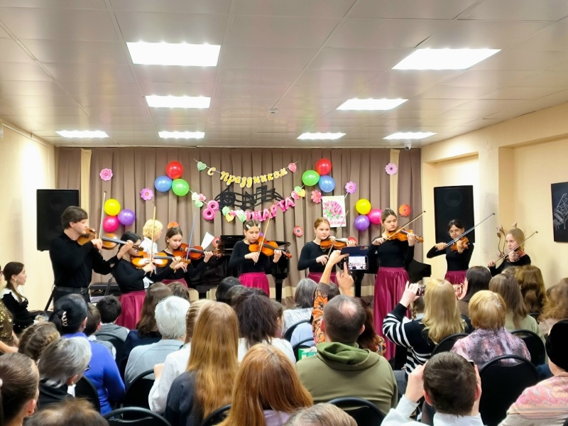 Концерт прошел в теплой и дружеской атмосфере, наполненной радостью и восхищением. Преподаватели и ученики подготовили выступления, которые вызвали бурные аплодисменты зрителей.