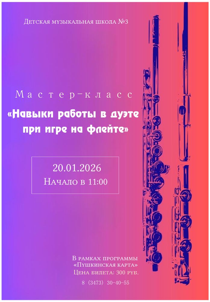 20 января в 11:00 в школе состоится мастер-класс по флейте.